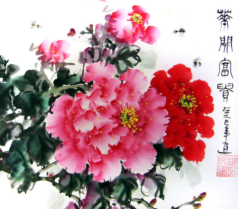 第一字画网的小品牡丹国画,这幅一平尺的小品牡丹国画作品画风细腻、简单生动,牡丹寓意着富贵吉祥,挂在家里客厅或是玄关都是非常不错的选择,如果放在画廊出售,弘文老师此幅小品牡丹国画的标价在680元左右。