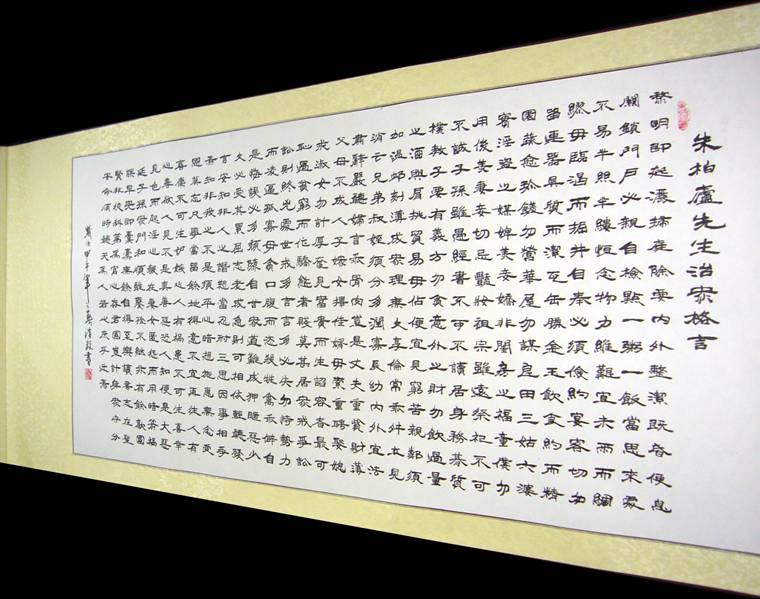 • 产品简介: 书法朱柏庐治家格言,四尺隶书作品,已装裱。