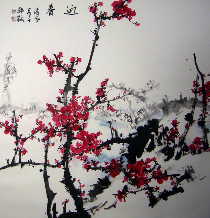 • 产品简介: 斗方水墨红梅,齐鲁画家韩梅四尺斗方梅花作品,已装裱。