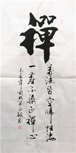 第一字画网的赢字书法,这幅赢字书法适合挂在家里的书房、或是办公室等场合,装裱后尺寸达到1.2米长,是湖北书法家郁桂龙老师条幅作品。