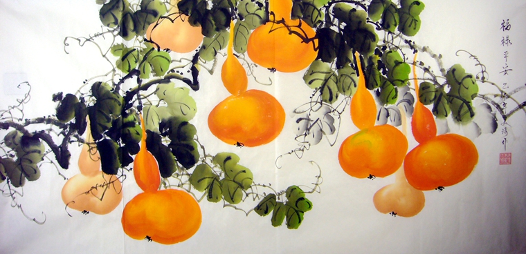 • 产品简介: 写意水墨画葫芦,美琦老师四尺作品。
