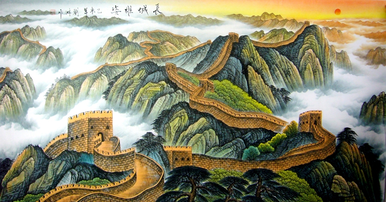 第一字画网精彩呈现的万里长城国画,是知名画家刘淋老师的巨幅精彩作品,本幅国画长城《长城雄风》构图源于人民大会堂悬挂的巨幅山水画《万里长城》。这幅大六尺长城画芯长度1.8米左右,是一幅大气磅礴的作品,用笔遒劲,墨色清雅,画面中长城、云层和山脉的细节,可以看出刘淋老师的精湛画功。