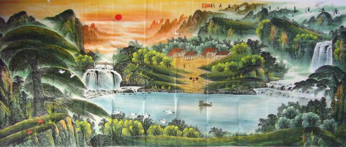 第一字画网的风水写意山水画,是一副大气磅礴的作品,彩墨交融,墨色清雅,是王咏茗老师的用心作品。小八尺大写意山水裱完后尺寸达到3米左右,如果放在画廊出售,王咏茗此副大写意山水的标价在7000元左右。这幅作品适合挂在家里的客厅、或公司的办公室、会议室等场合,作品布局合理、意境深动。