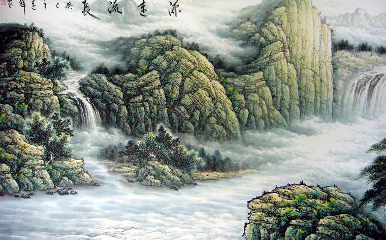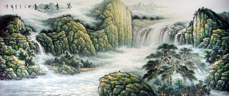 • 产品简介: 源远流长办公室风水画,画家梁连辉老师小八尺作品