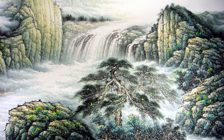 瀑布山水国画