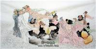 第一字画网的人物画献桃,是一副写意风格古代人物作品,模仿名家范曾老师的三尺斗方的水墨人物画意境生动,如果放在画廊出售,老师这幅斗方水墨人物画标价大约在2000元左右。