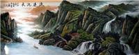 聚宝盆:此画是第一字画网推荐的风水画佳作《福山秀水》。刘淋老师整幅作品根据风水布局、满含鸿运当头,财运如浩浩瀑水,生生不息之意。作品整体看来象个金元宝。远山层峦叠峰,更表达了源远流长的意境。因此挂山水画是非常吉利的。将此风水画悬挂于厅堂,立添主人财气,令人一见即生舒适安逸之感,获人兴财旺之效。青山绿松间配上了瀑布流水,不仅给画面增添了灵韵和动感,更表现了一种财源滚滚,源远流长的吉祥意义。非常适合家居,企业正堂装挂及馈赠亲朋好友的上佳之选~!!!