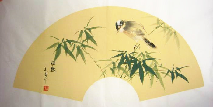 • 产品简介: 扇形竹鸟花鸟画,美琦老师作品。