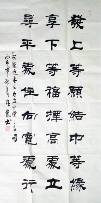 • 产品简介: 发上等愿书法作品,湖北书法家郁桂龙老师四尺作品,未装裱.