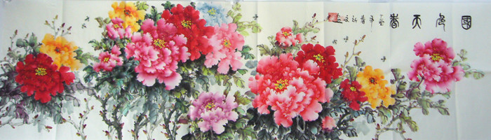第一字画网的国画牡丹,作品裱完后尺寸近2.2米左右,是一幅水准出色的六尺国画牡丹花画,作品画风细腻、栩栩如生,挂在家里客厅或是送人都是非常不错的选择,挂客厅的话,特别适合挂在客厅沙发的背景墙,喜气十足、富贵满堂。如果放在画廊出售,弘文老师此副国画牡丹花开富贵牡丹画的标价在3000元左右。欧阳修赞牡丹曰:“天下真花独牡丹”,牡丹花是富贵和荣誉的象征。