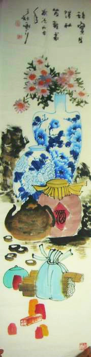 竖幅字画作品装裱成轴的效果(方便直接悬挂)