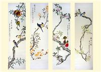 工笔花鸟国画四条屏