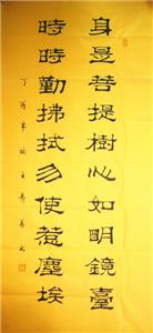 第一字画网的六祖慧能的禅悟书法,适合挂在公司的办公室,或是家里的书房,这幅手写毛笔隶书书法作品是寿善老师的作品,装裱后长度约在1.5米左右,办公室书法字画作品笔法老练苍劲大气,寿善老师此幅六祖慧能的禅悟办公室书法字画的标价大约在1500元左右。