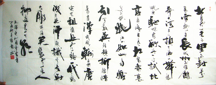 第一字画网的六尺书法作品沁园春雪,六尺书法作品沁园春雪装裱后尺寸达到2.2米长,作品笔法老练,苍劲有力,挂在家里或是送人都是非常不错的选择,如果放在画廊出售,湖北书法家郁桂龙老师此幅小六尺书法作品沁园春雪的价格在1800元左右。