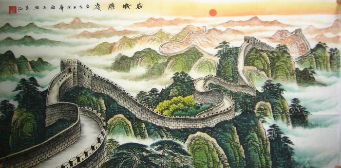 第一字画网的中国式风水画长城国画长城山水画《长城雄风》裱完后长度在1.8米左右,是一幅大气磅礴的四尺国画山水作品,万里长城雄伟壮观,气势磅礴。如果放在画廊出售,万海石老师此幅四尺国画长城的标价在3000元左右。