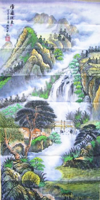 第一字画网的玄关竖幅山水国画,这幅四尺的聚财山水画尺寸近1.8米左右,是一幅大气磅礴的四尺山水作品,作品雄浑苍劲,清新秀雅,布局合理、气势磅礴,这幅山水美景视觉效果上佳。如果放在画廊出售,刘淋老师此幅聚财风水画山水画的标价在3000元左右。