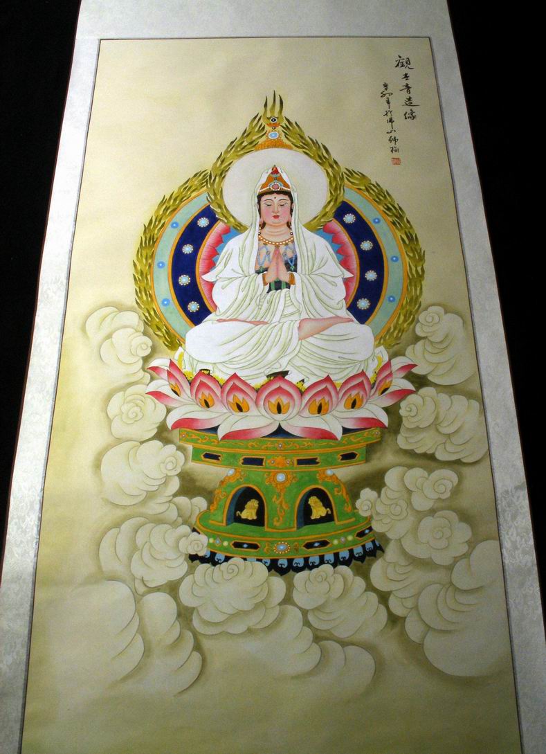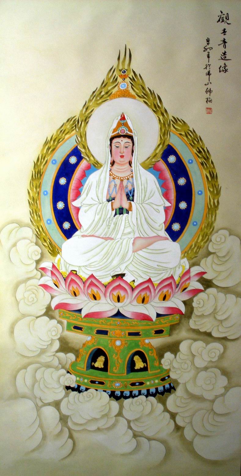 • 产品简介: 工笔画观世音菩萨,韩梅老师四尺观世音菩萨工笔作品,已装裱。