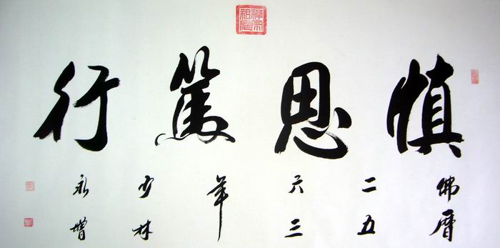 • 产品简介: 慎思笃行(此作品询价),释永增大师四尺书法。