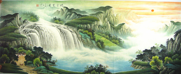 第一字画网的大瀑布国画会议室山水画,是一副大气磅礴的作品,彩墨交融,墨色清雅,是王咏茗老师的用心作品。小八尺大写意山水裱完后尺寸达到3米左右,如果放在画廊出售,王咏茗此副大写意山水画的标价在7000元左右。这幅作品适合挂在家里的客厅、或公司的办公室、会议室等场合,作品布局合理、意境深动。