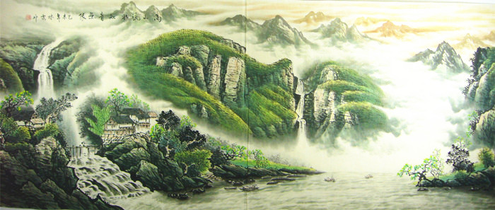 第一字画网的小八尺写意国画山水画,小八尺山水画若裱完后尺寸近2.8米左右,是一幅挺有意境的小八尺山水作品,作品清新秀雅,布局合理,这幅作品视觉效果上佳,如果放在画廊出售,林云老师此幅小八尺办公室山水画的标价在5000元左右。