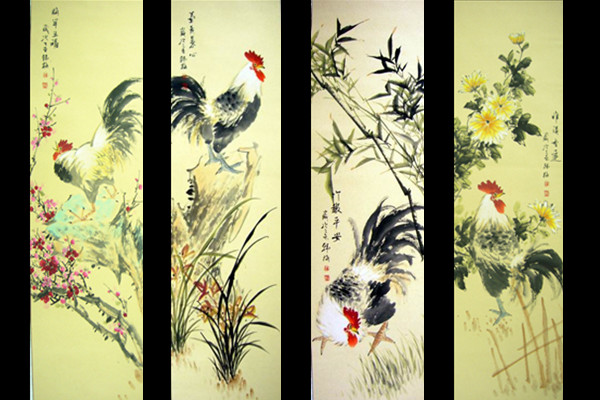 【尺寸】梅兰竹菊雄鸡四条幅 共四幅组成