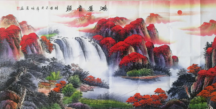 第一字画网的鸿运当头国画山水画作品,数量只有一幅,售完即止。四尺重彩山水画裱完后尺寸近1.8米左右,是一幅大气磅礴的四尺山水画作品,作品意境生动、山水交汇,清新秀雅,布局合理,视觉效果上佳,看作品的气势、云层和山脉的细节,就能看出老师的深厚画功,气派非凡。如果放在画廊出售,王咏茗老师此幅国画山水画的标价在2000元左右。