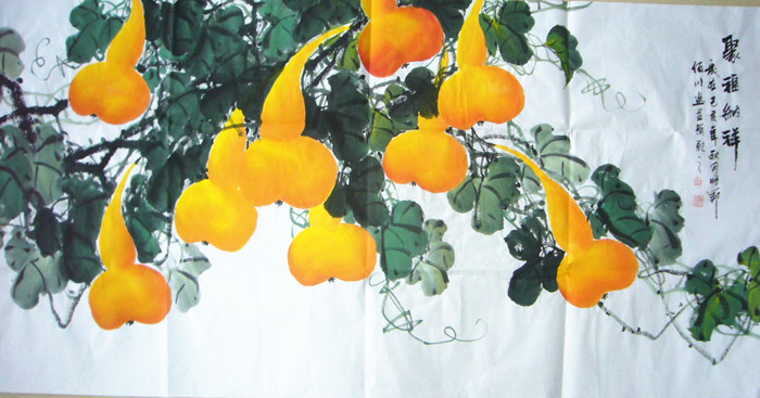 • 产品简介: 客厅葫芦图作品,谭佰川老师四尺花鸟画精彩作品