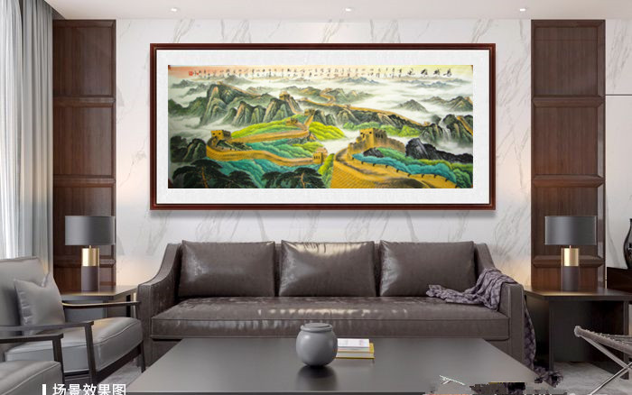 第一字画网精彩呈现的长城雄风国画长城画,是知名画家刘淋老师的精彩作品,这幅小八尺长城裱完后尺寸近2.8米左右,是一幅非常大气的作品,用笔遒劲,墨色清雅,画面中长城、云层和山脉的细节,可以看出刘淋老师的精湛画功。刘淋老师的作品中,色彩的意味越来越浓,以浓重的色墨为基调,并在这种基调的基础上加以破墨、破色等技巧和积加的笔触,从而使他的作品在厚重中增加了水、墨、色交融的韵致,这种韵致是他生命情态节奏与山水感和的体现,也是他人生情态借助山水的物化。如果放在画廊出售,刘淋老师此幅小八尺国画万里长城裱完后的标价在6000元左右,作品的气势和画功都是一流的,作品的构图是仿人民大会堂宴会厅的长城画作,这幅八尺的作品适合挂在公司的大厅、或会议室等重要场合,气势十足,彰显档次。