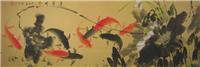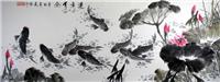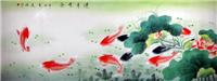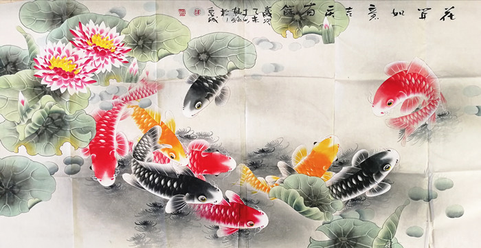 • 产品简介: 客厅字画荷花九鱼图,齐鲁名家韩梅老师作品,未装裱。