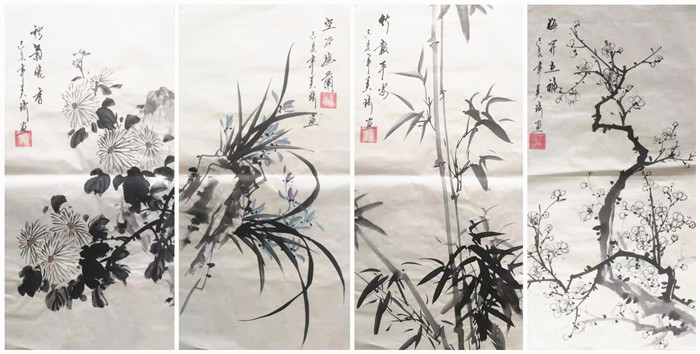 【尺寸】国画梅兰竹菊四君子 共四幅组成