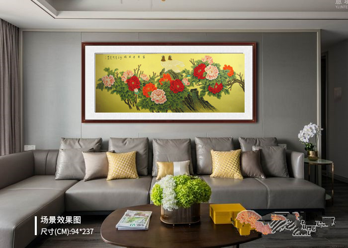 第一字画网的工笔花鸟画富贵牡丹图,小八尺客厅字画牡丹图裱完后的长度达到2.8米左右,作品虚实结合,突出主题,栩栩如生。大尺寸的工笔牡丹图比较少见,牡丹寓意着富贵吉祥,涌动在画面中得气息,画面中得白鸽代表着和平,两者结合寓意富贵平安,此幅牡丹花鸟画作品挂在家里客厅或是送人都是非常不错的选择,如果放在画廊出售,韩梅老师此幅八尺工笔画和平鸽牡丹画的标价在7000元左右。