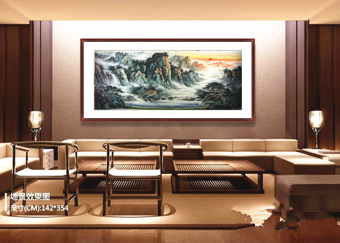 第一字画网的客厅山水画办公室字画,数量只有一幅,售完即止。大丈二山水画作品高山流水山水画是一幅大气磅礴的巨幅山水画,画芯的尺寸就达到了3.5米长,十分的雄伟壮观,作品气势磅礴、画功细腻,是一副精美的山水情画适合挂在大型的会客厅、或是宴会厅,气派非凡,并能彰显档次,如果放在画廊出售,刘淋老师此幅客厅山水国画的标价起码在9000元左右。