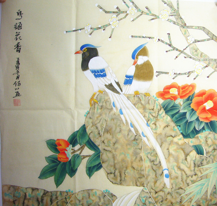 • 产品简介: 工笔花鸟画卧室字画,谭佰川老师四尺花鸟画精彩作品。