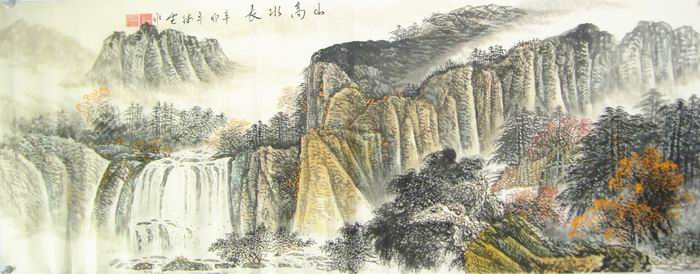 第一字画网的小六尺写意国画山水画,已完成装裱。小六尺山水画裱完后尺寸近2.2米左右,是一幅挺有意境的小六尺山水作品,作品清新秀雅,布局合理,如果放在画廊出售,林云老师此幅小六尺山水画的标价在1800元左右。