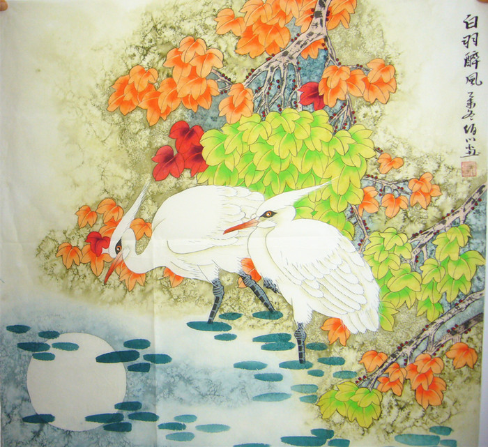 • 产品简介: 客厅装饰字画工笔白鹭花鸟画,谭佰川老师四尺斗方花鸟画精彩作品。