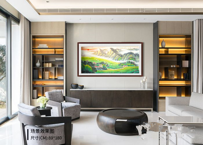 第一字画网的六尺横幅山水画,这幅六尺横幅山水画裱完后尺寸将达到2.2米左右,是一副刘淋老师的实力新作,作品清新秀雅,布局合理,视觉效果上佳,看作品的气势、云层、山脉和水流的细节,就能看出老师的深厚画功,适合挂在客厅或书房欣赏,如果放在画廊出售,刘淋老师此幅六尺横幅山水画的标价在6000元左右。
