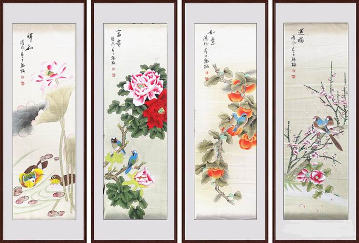 (画心尺寸约:长1.00米*宽0.28米*4幅)
