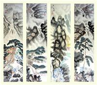 六尺对开山水画四条屏