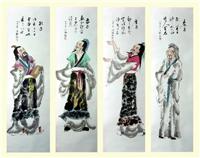 四条屏人物画四大圣人