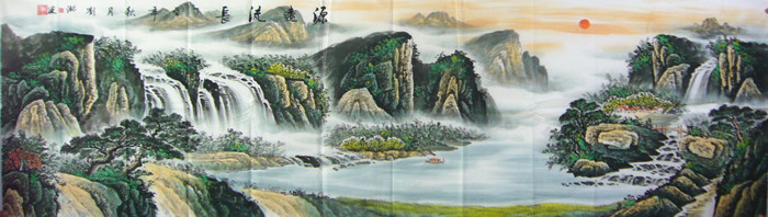 八尺对开风水山水画