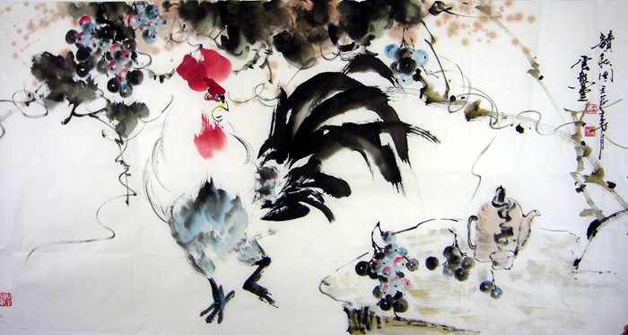 • 产品简介: 写意公鸡葡萄图,崔想善四尺作品,未装裱。