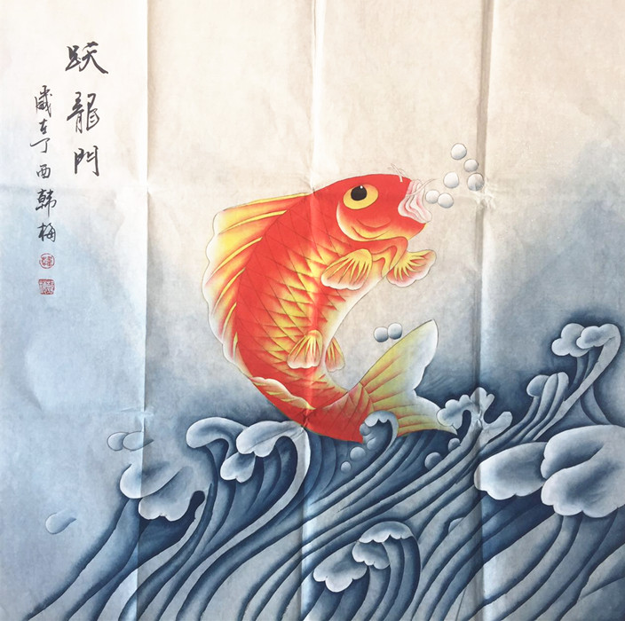 第一字画网的斗方花鸟画鲤鱼跃龙门,这幅四尺斗方的工笔画装裱后尺寸约为0.8米见方,是一幅非常有灵气的作品跃龙门,作品挂在家里餐厅或客厅都是不错的选择,作品的画功十分细腻,水准出色,如果放在画廊出售,韩梅老师此幅四尺斗方工笔鱼的标价在1600元左右。