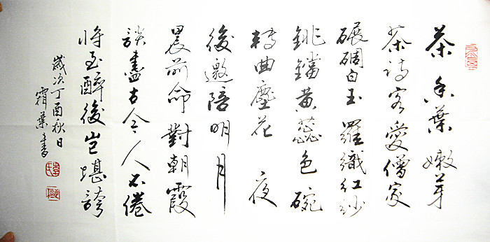 第一字画网的客厅茶室诗词书法,书法作品笔法老练,一气呵成,适合挂在家里的客厅或书房,装裱后长度约在1.2米左右,作品水准出色,如果放在画廊出售,李正枢老师此幅书法诗词书法裱完后的标价大约在1500元左右。李正枢老师,字霜叶,云南的老书法家,擅长行楷,几十年的书法功力,功力深厚。李老师四尺对开的书法在云南的艺术品拍卖行已经是2000元起拍价了,书法的实力不用细说,光看字的水准就知道了。