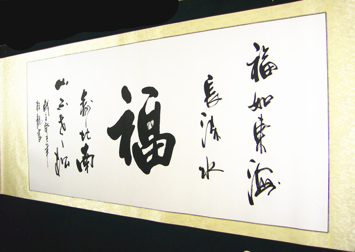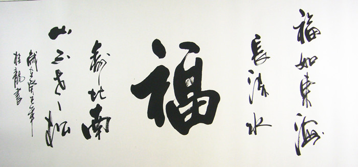 第一字画网四字书法《福》是四尺的书法作品,桂龙老师这幅福书法作品非常适合挂在办公室,气派非凡,装裱后尺寸达到1.8米长,如果放在画廊出售,湖北书法家郁桂龙老师客厅书法福字的标价在1500元左右。书法精品作品众多,如精气神书法厚德载福书法等。