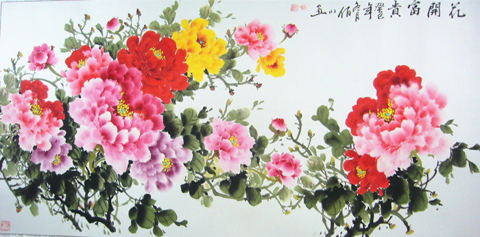 第一字画网的四尺富贵牡丹画,这幅四尺的牡丹作品裱完后长度近1.8米左右,是一幅水准上佳的作品,作品画风细腻、栩栩如生,牡丹寓意着富贵吉祥,挂在家里客厅或是送人都是非常不错的选择,如果放在画廊出售,谭佰川老师此幅国画四尺尺牡丹的标价在1500元左右。