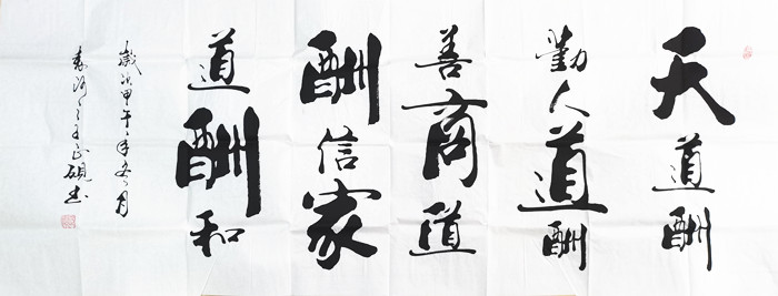 • 产品简介: 办公室励志书法天道酬勤人道酬善商道酬信家道酬和,甘正砚老师作品。