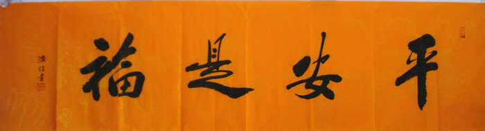 第一字画网的四尺对开书平安是福,适合挂在书房或会客厅等不同的场合,这幅四尺对开书法平安是福装裱后长度约在1.8米左右,作品老练大气,如果放在画廊出售,演信法师此幅行行书书法平安是福的标价大约在1500元左右。
