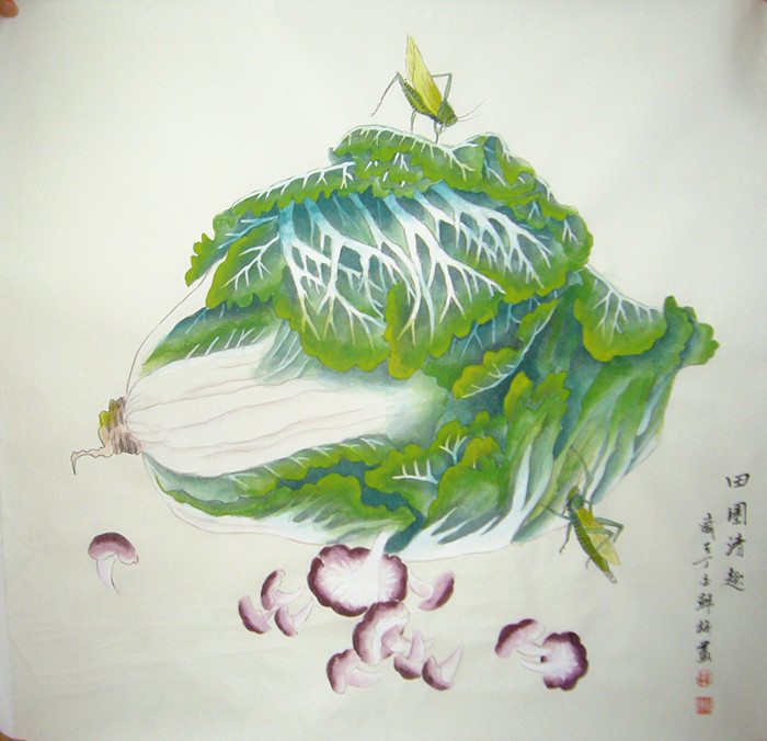 • 产品简介: 日日生财白菜图斗方工笔百财图,山东名家韩梅老师作品。