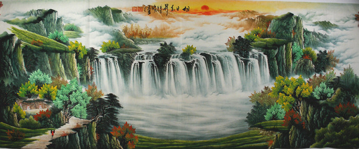 • 产品简介: 八尺国画旭日东升山水画,王咏茗老师小八尺山水作品,未装裱。