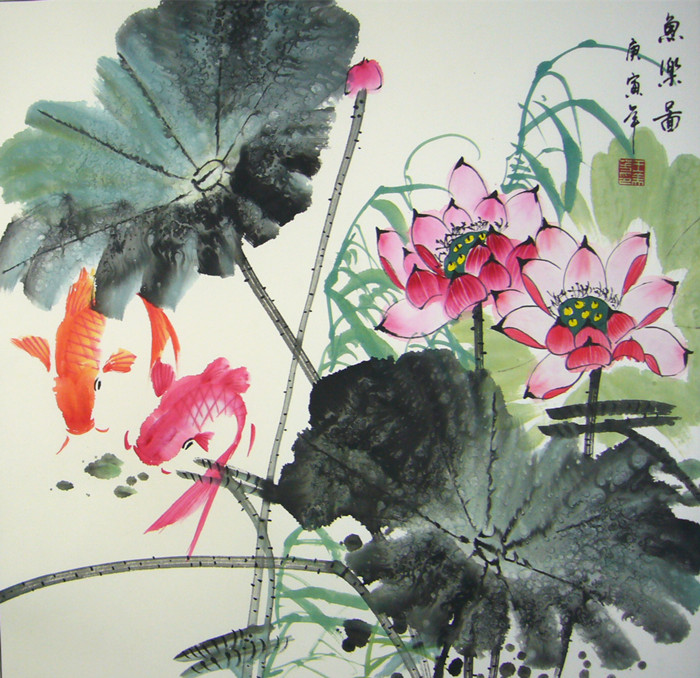 第一字画网的斗方荷花鲤鱼国画,这幅斗方鲤鱼荷花图画面温馨,挂在家里客厅、卧室或是送人都是非常不错的选择,如果放在画廊出售,王美琦老师此幅家居花鸟国画裱完后的标价在1000元左右。